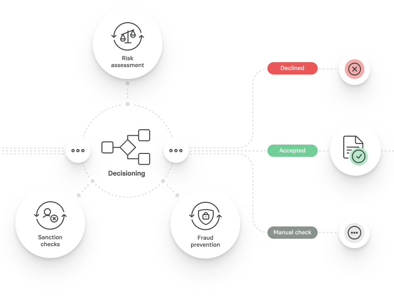 In this key step, the individual credit decision takes place on the basis of the implemented decisioning rules. These are implemented specifically according to your requirements with the help of DMN decision tables and thus remain transparent despite the highly automated process. This is because their technical parameters are transferred one-to-one into the decisioning workflow and the results of the individual case decisions thus remain accessible and traceable. External data from sources such as creditworthiness checks, fraud prevention and sanction checks is incorporated into the decisioning process. For the European market, we have already connected many of the most important service providers – such as Schufa, CRIF, CEG, Infoscore, Kremo and ZEK – and can also integrate further services via our flexible API architecture according to your individual requirements.